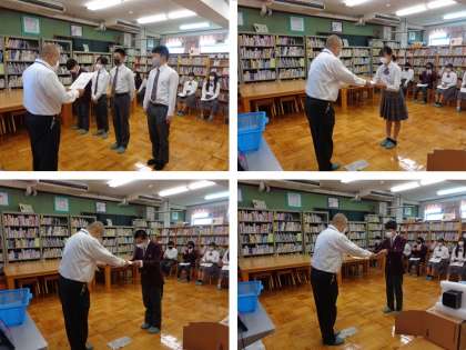 6限,春季大会やその他の大会で優秀な成績を収めた部活,選手の表彰を行いました。今回,力が発揮できなかった部も次回がんばってください。