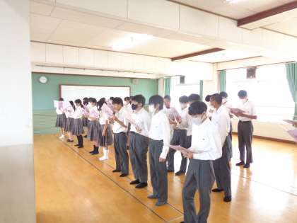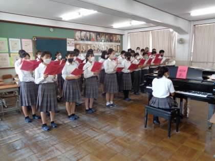 音楽室や体育館などでの合唱練習が始まりました。割り当て時間は15分。いかに段取りよく練習していけるか・・また、教室との練習でのギャップ・・特に体育館ではなかなか声が響かず、自信を失うこともよくあります。体育館でしっかりと歌えるようになることを目標に頑張ってください。