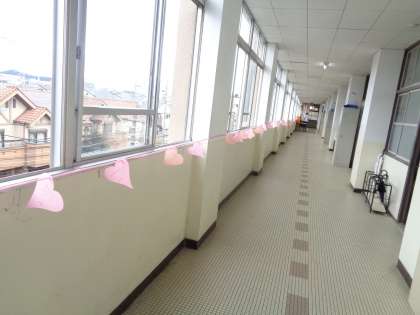 3階の廊下の窓際に、かわいいハート型のピンクの紙が綴られていました。3年生の学年としてのいいところが書かれていました。1・2年生にも将来、自分たちのように団結した学年集団を創ってほしいという願いがこめられているとのことです。すばらしいですね。