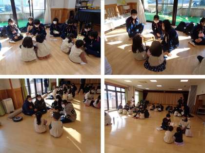3年生の家庭科で行われる保育実習もコロナ禍の中、中断していましたが、今日、3年ぶりに取り組むことができました。以前は保育園児の皆さんを迎えに行って中学校まで来てもらって行っていましたが、協力してくださった梅ノ宮保育園の園舎が新しくなり、広いスペースを確保できたことや、行き来の安全を考えて、中学生が園を訪れて行うことになりました。2組と4組が訪れ、グループごとに用意した絵本を紹介したり、遊びを紹介したりしました。本当にこころ温まる時間が過ごせました。来週、3クラスまたお世話になります。よろしくお願いいたします。