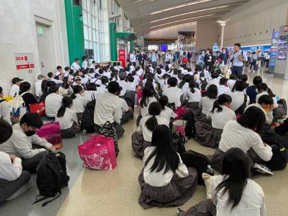 那覇空港から大阪空港を目指します。あっという間の三日間でしたが,忘れられない学びと思い出があったことでしょう。でも,家に到着するまでしっかりと行動しましょう。