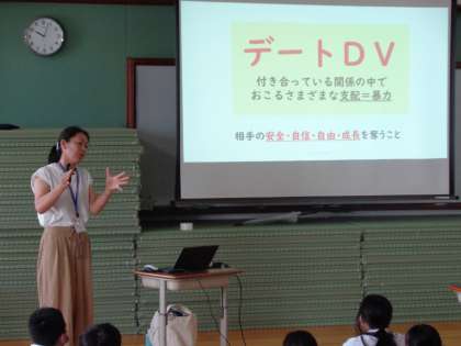 健全な男女交際ができるよう、多岐に渡りお話をいただきました。男女交際は、まず相手を思いやることから始まります。相手を尊重しての関係があって成り立つものです。講師の方の熱いお話を聞いて、梅中生は真剣に授業を受けていました。ぜひ、今後に活かしてください。講師の方、暑い中ありがとうございました!