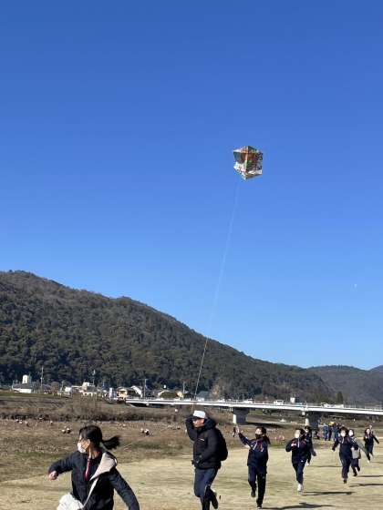 1月14日(日)午前、桂川河川敷グランドにて、全梅津凧あげ大会が開催され、本校から、美術部が大凧制作から携わり、参加しました。