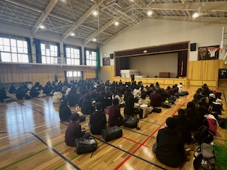 先日、2月9日(金)6限、体育館にて、私学入試事前指導が行われました。みんな緊張気味ですが、いい表情をして話を聴いていました。これまで頑張ってきたことを思い出し、精一杯挑戦してきてほしいと思います。がんばれ! 3年生!