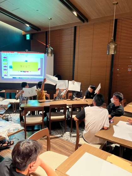 次は「五文字クイズ」五文字の物の名前をチームで回答します。これも盛り上がった!