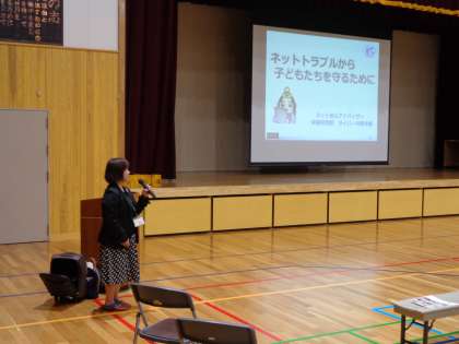 11月19日(火)夜、梅津地域生徒指導連絡協議会の講習会が行われました。今回は、京都府警サイバー対策本部と連携をしているアドバイザーから、「ネットトラブル防止のための情報モラル」として、右京区の身近な事例紹介等を教えていただきました。