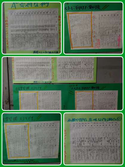 提出プリントの中で素晴らしい部分を教科の先生の解説付きで掲示されていました。