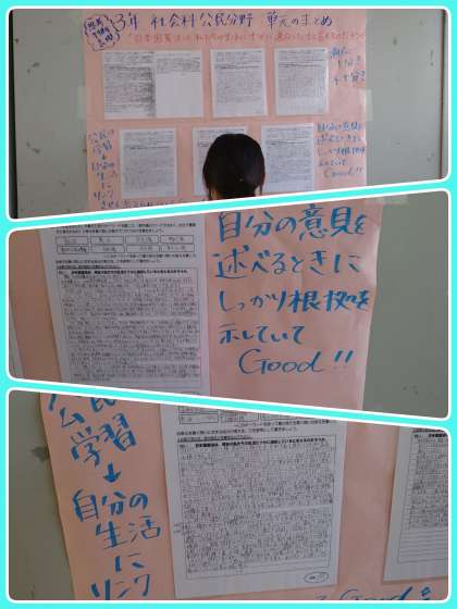 提出プリントの中で素晴らしい部分を教科の先生の解説付きで掲示されていました。