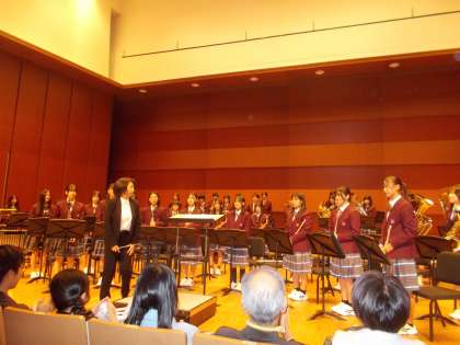 3年生が引退し、初めての演奏でした。生徒の顔は、緊張していましたが堂々と演奏してくれました。演奏が終わると会場中が大きな拍手で包まれました。今後も頑張ってください。