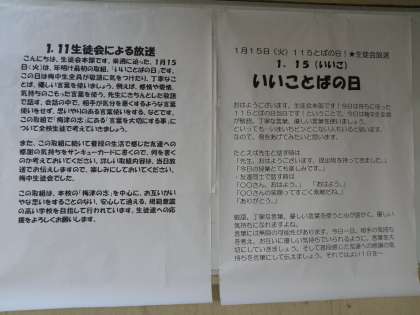 梅津中では先日も紹介しました1.15(いいご)を「いいことばの日」と名付け、生徒会中心に下記のような意図を持って取組を始めることになりました。先日に続き、当日生徒会本部からこの取組の説明があり、取組がスタートしました。