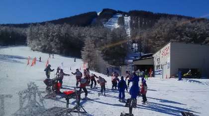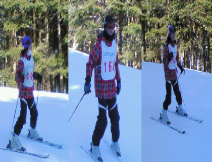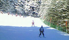 みんなさっそうと滑っています。本当に三日間とも天気に恵まれたすばらしいスキー日和です。頂上から無事に滑り降りてくる生徒の姿が見えています。ゴーグルをしているので誰なのかはよく分かりませんが、上達の早さに驚くばかりです。