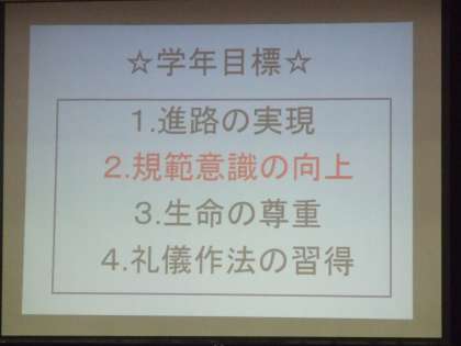 本日、夏季休業前の3年学年集会が行われました。4月から今日までのクラス、学年の良かった点、悪かった点をクラス毎にお互いに出し合い、休み明けまた頑張ることを誓いました。特に3年生は年度当初に建てた学年目標をどの程度達成できたかを検証し、来る進路決定に生かせるよう、細かく分析をしてくれていました。休み明けが楽しみだ。君たちを信じて!