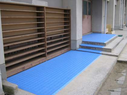 1月に地域の皆様に助けられて製作した体育館の2カ所の下駄箱ですが、本日マットを敷いて利用可能となりました。これで全学年が体育館に入るときも、中にシートをひいて靴を並べる、と言うことをしなくて良くなりました。体育館が、広く美しく使えます。