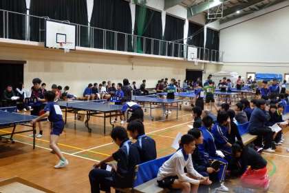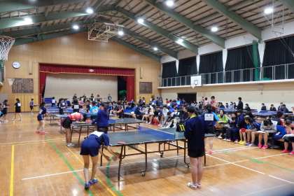 本日は4ブロックに分かれての個人予選。その1会場が本校です。開会式の後すぐに、試合は始まりましたが、決勝へ進む選手が決まるまでには、まだ時間がかかりそうです。強いチームが集まってしまったブロックだそうですが、梅津中卓球部がんばってください!