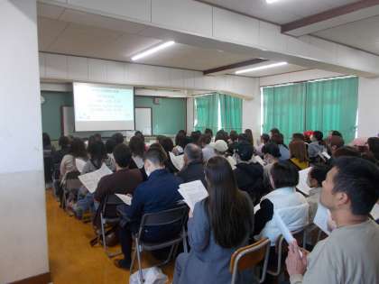 続く5限に、来年度新入生となる小学校6年生保護者対象に、入学説明会が行われました。たくさんの保護者に参加していただきました。校長の挨拶の後、教務主任、生徒指導部長から本校の教育課程、学校生活のルール等について説明があり、通学服取り扱い業者からの話もありました。