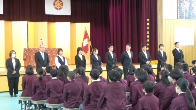 本日、4月9日(木)、晴天に恵まれ、令和8年度 第51回梅津中学校入学式が行われました。