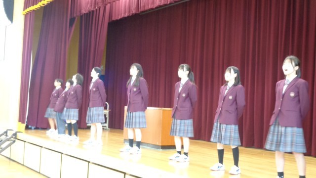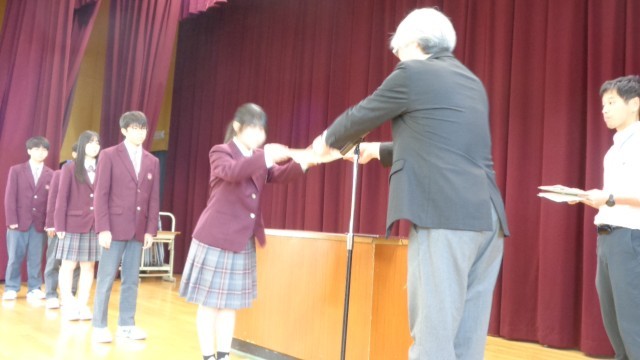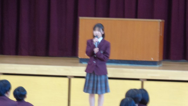 学級役員代表の認証、生徒会長の挨拶、梅津の志の全校唱和と続きました。