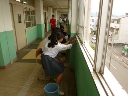 本日の活動は、「磨いて磨いてピカピカの学校」ということで、廊下から階段から、窓からトイレから、みんなで自分たちの校舎を磨きたおしました。