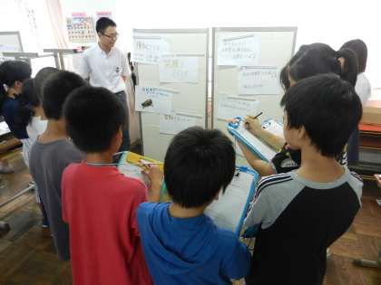 3年生では、今日の5限に2年生、6限は西院小6年生を対象に、職場体験学習で得たものをポスター形式で発信する「探究学習発表会」を行いました。
