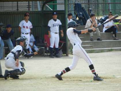 7月15日(土)殿田公園野球場において、野球部が夏の大会の1回戦に臨みました。相手は、西陵・向島東・洛西中学校の合同チームでした。序盤から、苦しい展開でゲームはすすみましたが、数少ない3年生が中心となって、1年生と一緒に最後まで戦い抜きました。点差こそつきましたが、みんなでがんばりきったいい試合でした。