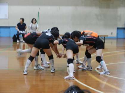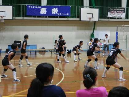 桃陵中学校体育館で、女子バレーボール部が夏の大会に臨みました。対戦相手は嘉楽中学校。点差はついてしまいましたが、最後まであきらめずに、元気を振り絞って戦い続けました。