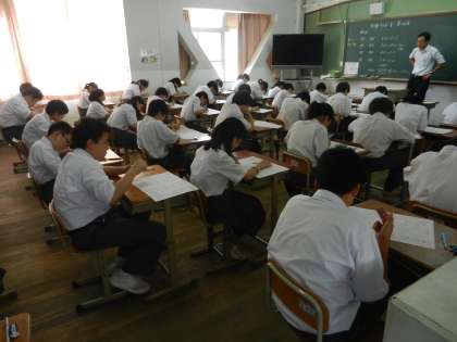今日から3日間1学期の期末考査「評価テスト」を行います。朝の自習時間からどの学年,どのクラスも真剣に1点をあきらめない勉強ぶりでした。がんばった成果を是非発揮してください。期待しています。