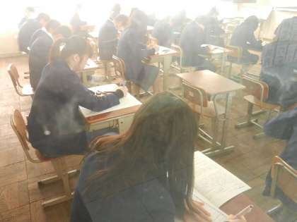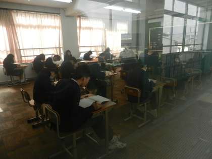 学校では、1年生は通常授業、3年生は中学校生活最後の定期テストとなる「学年末評価テスト」が始まりました。今日、明日、あさっての三日間、3年生は頑張ります。
