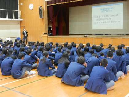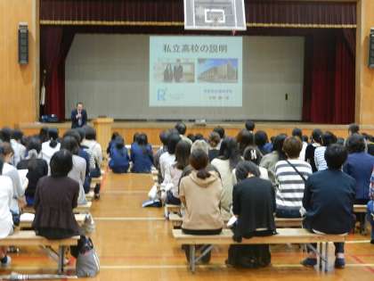 休みの間の日ですが,大きな学校行事が終わり,3年生はいよいよ本気です。今週末から始まるプレ進路懇談を前に,進路を展望する上での情報を得るための説明会を行いました。実際に公立高校と私立高校の先生に来ていただき,入試の方法や高校生活まで,実際にはこんな風になるんだよということを聞かせてもらいました。