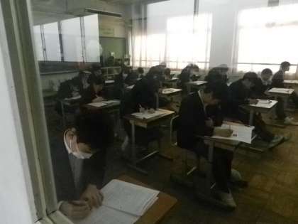 2年生の修学旅行の楽しそうな様子を紹介していますが、学校では1年生が通常の授業、そして3年生は何と中学校生活最後の学年末テストに臨んでいます。3年生は、これからいよいよ受験(検)本番に突入していきます。この学年末テストも中期での公立受検には大きく関わってきます。本当に気の抜けないテストになります。校舎2階3階の3年生のフロアは、ピリッとした緊張感があります。3年生、頑張って下さい!