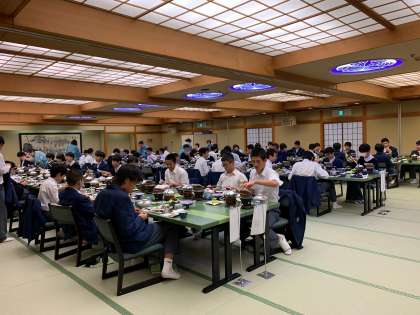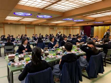 修学旅行2日目、夕食スタート。