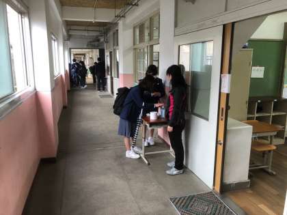 昨日に続き,登校してすぐに手洗い,消毒を行っています。健康観察,検温,マスクの着用等,自分と仲間を守る行動をしっかりとしてくれています。ご家庭でのご指導の賜物であると思っています。ご協力ありがとうございます。