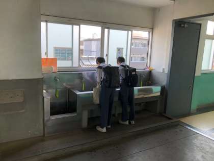 手洗い,消毒後も各自で持ってきたハンカチ,ティッシュで拭いている生徒もかなり増えてきました。一人一人が意識をしてくれているのをうれしく思います。慣れてくると緊張がゆるんでくることがあります。そうならないよう意識を高く持ってください。