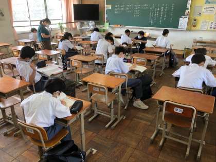 サマースクール2日目の様子です。今日から1年生も始まり,3学年そろっての実施です。特に1年生は,中学校初めての夏休みということでいろいろ戸惑うこともあるかもしれませんが,わからないことがあれば,遠慮なく,教職員に聞いて下さい。そして,今年は少し短い夏休みです。計画を立てて,規則正しい生活を心がけてください。