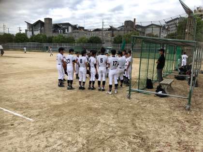 先にチャンスをつかんだ西院中学校が,積極的なバッティングで先制しました。その後も追加点を挙げ,堅い守りで相手チームを寄せ付けず,見事勝利をつかみました。