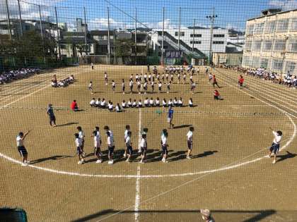 2年生学年種目「大縄跳び」の様子です。練習の時とは違い,本番で底力を見せているクラスもあるようです。
