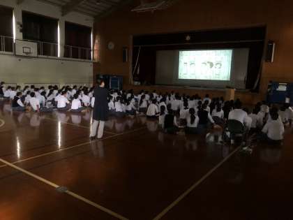 学年道徳でDVDを視聴しているところです。