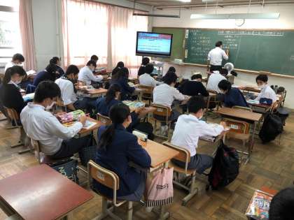 3年生の各教室では,3年生が,テレビ放送を視聴しました。直接話を聴けなかったので,その場で質問等ができなかったのは,少し残念であったかもしれません。もし,質問や疑問があれば,先生に話をしてください。