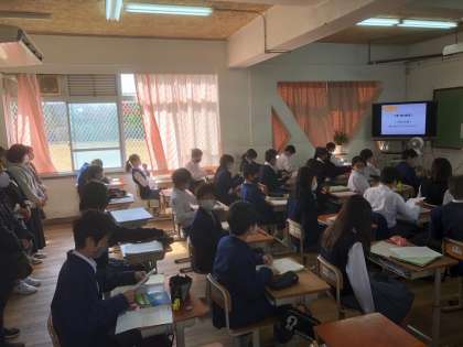 参観実施クラス 3年4組(音楽) 2年2組(英語)