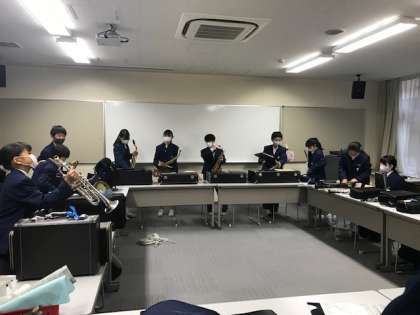 7日(土),京都市立堀川音楽高等学校ホールで行われた「第36回 京都市中学校総合文化祭 第73回 京都市中学校生徒音楽会」に吹奏楽部が参加しました。コロナウイルス感染拡大防止対策を行った中での開催でした。