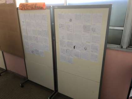 3月の「西院だより」では,各部から3年生への卒業のお祝いメッセージを載せさせていただきました。そのお返しではないですが,3年生から1・2年生へのメッセージが,1階廊下に掲示されています。1・2年生も嬉しそうに足を止めて見ていました。