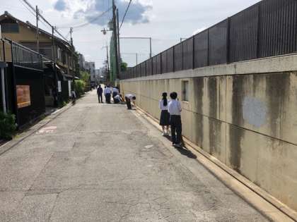 校外(学校周辺)の清掃もしました。雑草を抜いたり,ゴミを拾ったりしました。かなり日差しが強く,厚かったようです。