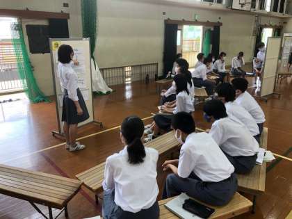 自分の意見を順序立てて説明する「話す力」と話し手の見方や考え方を整理して「聞く力」を養うこと,言語活動を通して,コミュニケーション能力の向上を目指すこと,取組を通して,探究意欲を高め,思考力・判断力・表現力を向上させ,深い学びを育むことを目的としています。