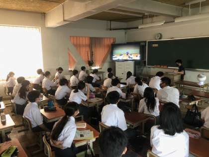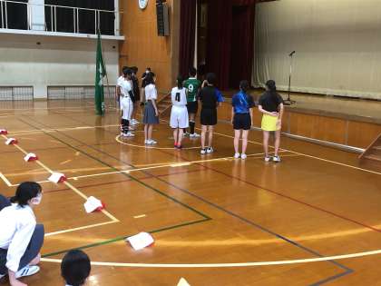 選手宣誓と教室でテレビ中継を見ている様子です。