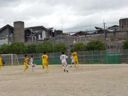 相手の猛攻に耐え続けて,ラスト3分。ハーフウェイライン付近の味方のフリーキックを頭であわせ,先制。その1点を最後まで集中力を切らさず,粘り強く守り切り,劇的な勝利を収めました。劣勢の中でも,自分たちの力を信じてプレーした西院中学校に感激しました。