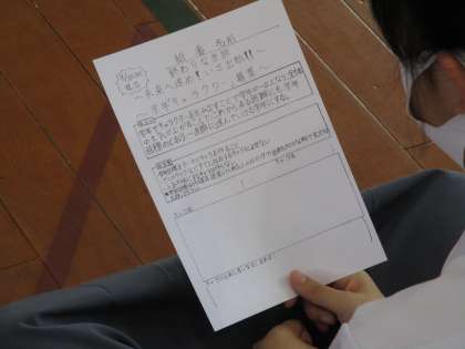 代議員が入場・集団指揮・司会・退場まで、役割分担をして,学年集会を運営しました。