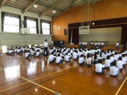 先生からは1学期の生活面での振り返りと学習面の話がありました。夏休みの宿題は,計画的に早めに仕上げて,有意義な夏休みを過ごしてほしいことなどの話がありました。