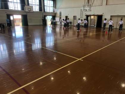 2年生学年集会の様子です。始めに学年・学級の親睦を図るために,レクリエーションを代議員が企画しました。「空き缶積み」,「おたまリレー」,「早口言葉」「わりばし落とし」の4種目を行いました。今まで,思うような学年企画ができていなかったので,学年全体が盛り上がった時間でした。