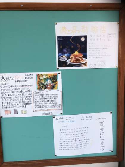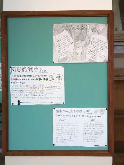 図書室の前におすすめ本の紹介ポスターが掲示されています。この夏,どんな本を読もうかなと考えている人は参考にして下さい。