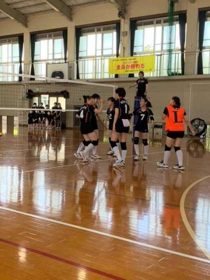 試合の様子です。高い打点からアタックを相手コートに打ち込んでいました。