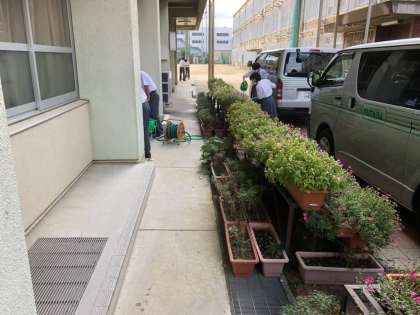 水やりや雑草抜き,落ち葉の除去などの手入れをしていきます。花と緑いっぱいの西院中学校を創る大きな役割を担っている活動です。校門をくぐるとたくさんの草花が出迎えてくれます。とても心が和む光景です。学校へお越しの際は,ぜひ,ご覧下さい。